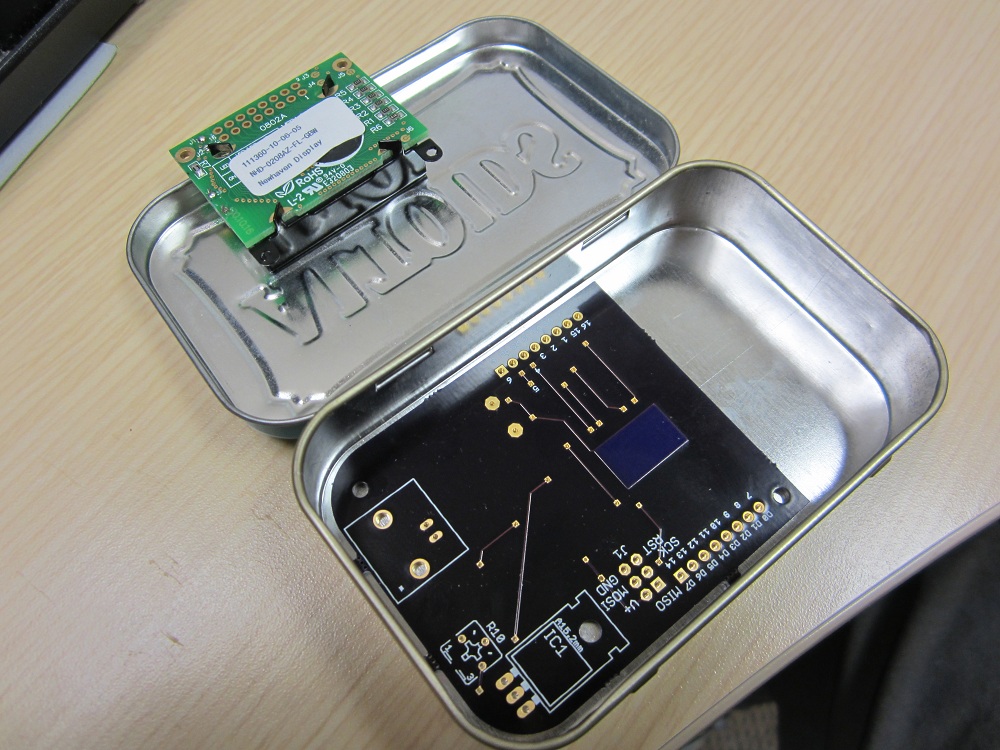 Potential enclosure, just empty Altoids box. You can see place for 9V battery on the right.