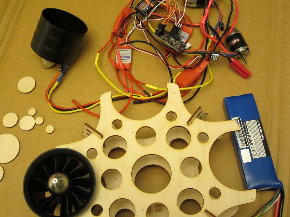 Same frame, controller, power controllers, receiver and other motors with connected wiring on top.